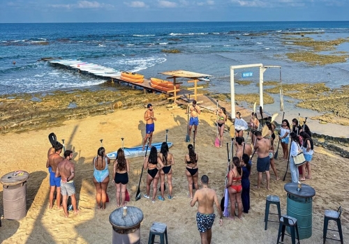 Our water sports station at Colonel Reef Beach is one of the biggest in the Middle East, with 40+ SUPs, kayaks, and transparent kayaks for rent. It’s the starting point for our SUP tours and water adventures on the Mediterranean Sea. With warm waters, stunning sunsets, and marine life like sea turtles, it’s the perfect place to explore and enjoy the coast.